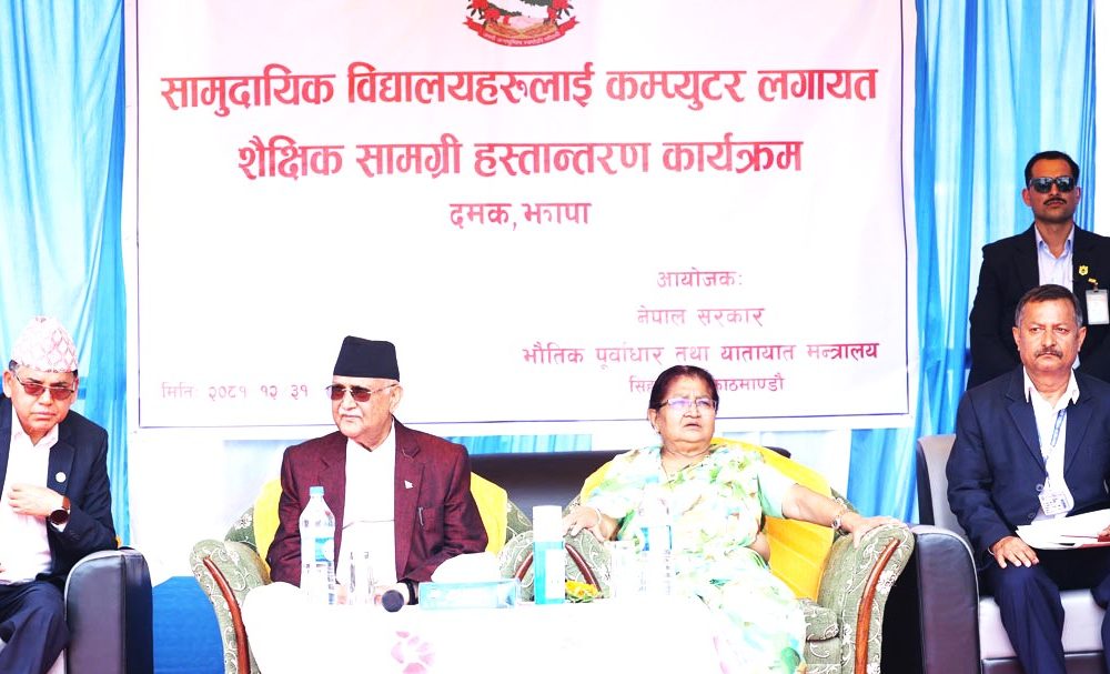 प्रधानमन्त्री ओलीले सामुदायिक विद्यालयलाई शैक्षिक सामग्री वितरण गरे