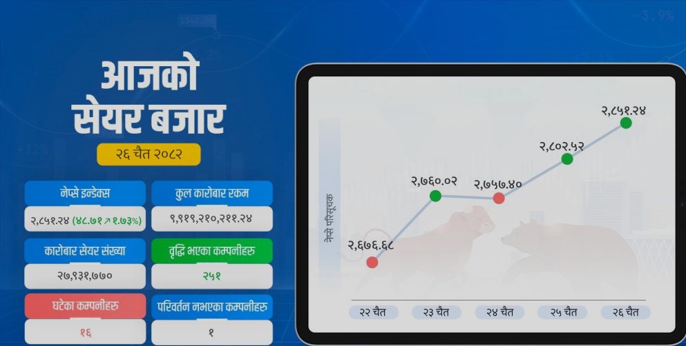 ४८ अंक बढ्यो सेयर बजार, ८ कम्पनीमा १० प्रतिशत वृद्धि