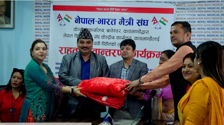 नेपाल–भारत मैत्री संघद्वारा बाढी–पहिरो पीडितका लागि राहत हस्तान्तरण