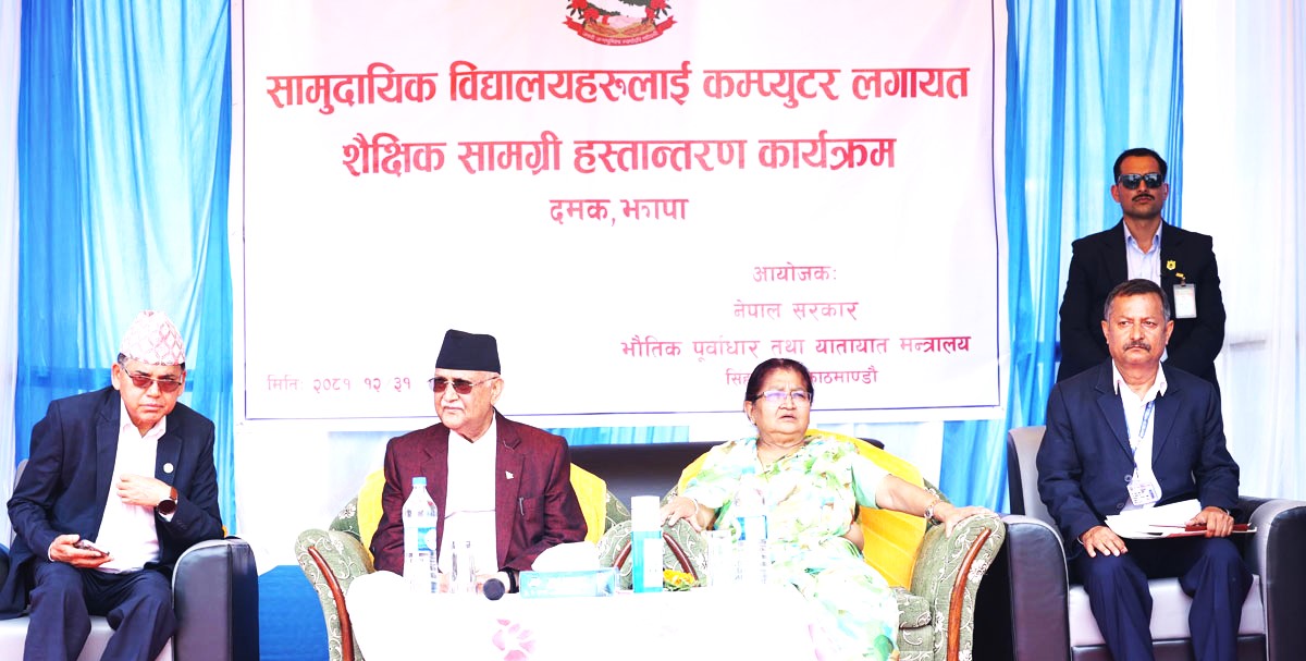 प्रधानमन्त्री ओलीले सामुदायिक विद्यालयलाई शैक्षिक सामग्री वितरण गरे